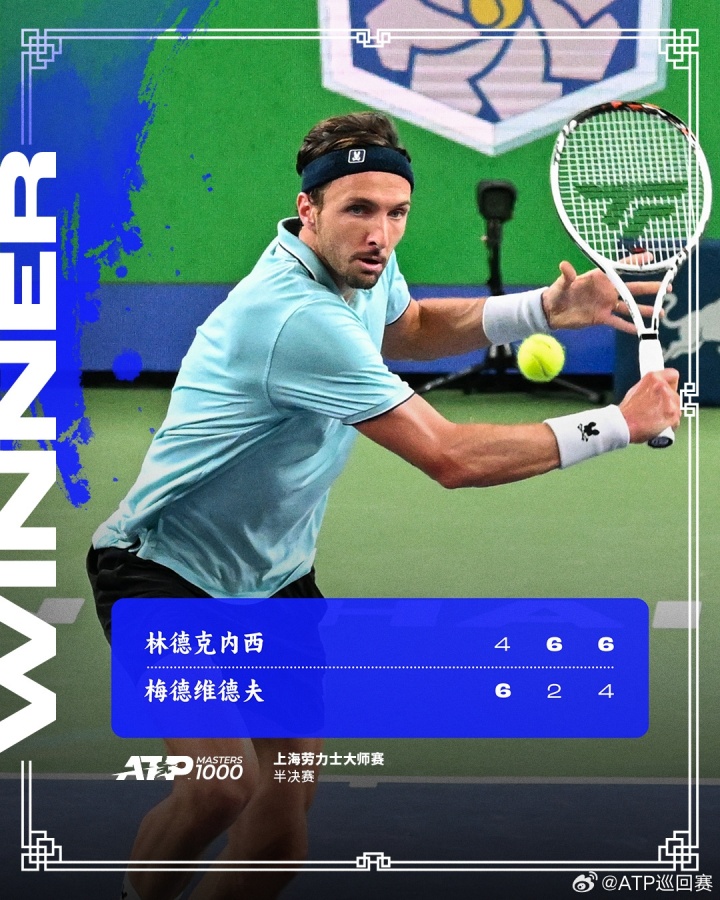 直播吧10月11日讯 ATP上海大师赛男单半决赛,法国选手林德克内希2-1逆转梅德韦杰夫,晋级决赛。这是林德克内希职业生涯首次跻身大师赛男单决赛,决赛他将与资格赛黑马,自己的表弟瓦舍罗争夺冠军!