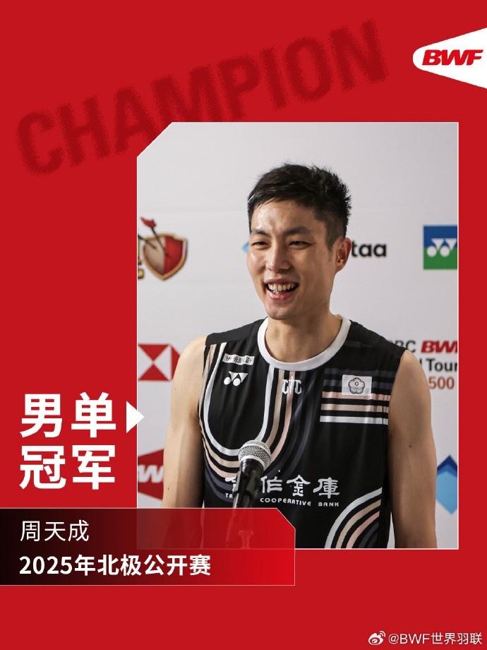 三局的具体比分为21-11、13-21、21-19,周天成2-1击败昆拉武特成功卫冕北极公开赛男单冠军,同时也斩获赛季首冠。