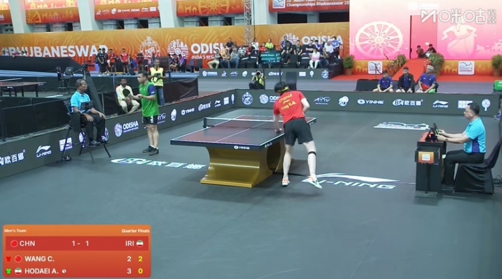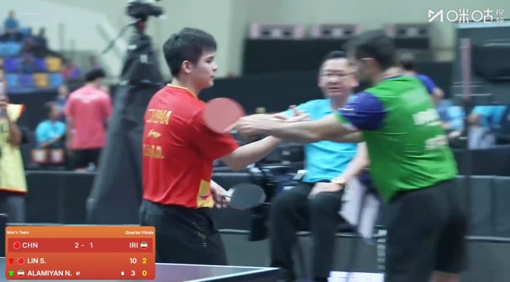 直播吧10月13日讯 乒乓球亚锦赛男团1/4决赛,中国队对阵伊朗队。首盘比赛林诗栋不敌15岁小将,此后三盘梁靖崑、王楚钦、林诗栋分别取胜。最终中国队3-1伊朗队晋级四强。