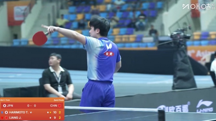 直播吧10月14日讯 今日乒乓球亚锦赛男团半决赛,中国队对阵日本队,首盘梁靖崑2-3不敌张本智和,中国队暂时0-1落后日本。稍后第二盘,王楚钦将对阵松岛辉空。