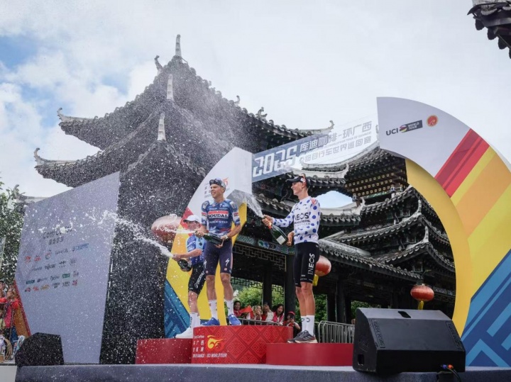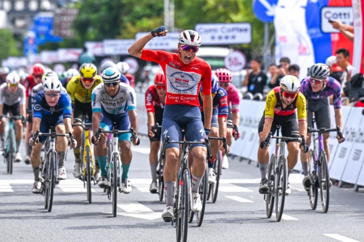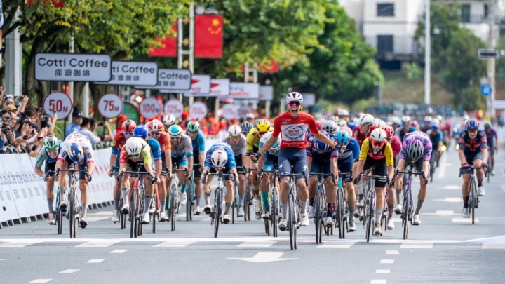 10月15日,2025环广西公路自行车世巡赛展开第二赛段的激烈争夺。昨天收获开门红的速的奥快步车队的法国小将保罗·马尼耶以出色的状态于锦绣古镇前的冲刺大战中再次夺得赛段冠军!
