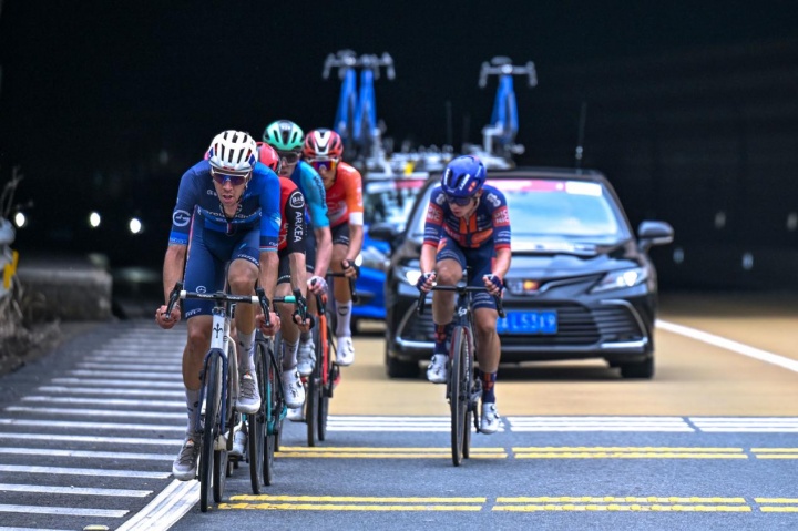 随着比赛进入靖西境内,车手们逐渐接近本赛段唯一的二级爬坡点。尽管主车群中不断有新的进攻,但均不见成效,与前方的六名突围车手时间差始终维持在1分钟。