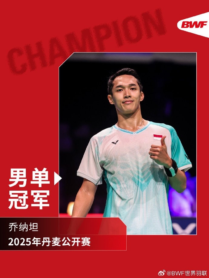 本场比赛,乔纳坦以13-21 21-15 21-15的比分逆转击败石宇奇,斩获赛季第二冠。