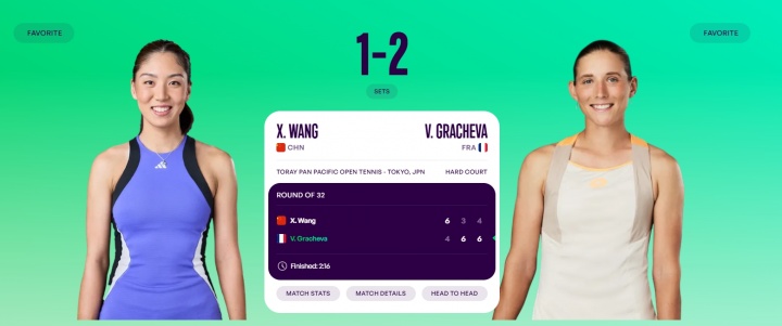 直播吧10月20日讯 WTA500东京站女单第1轮,王欣瑜1-2不敌资格赛选手格拉乔娃。格拉乔娃下一轮对阵本西奇。