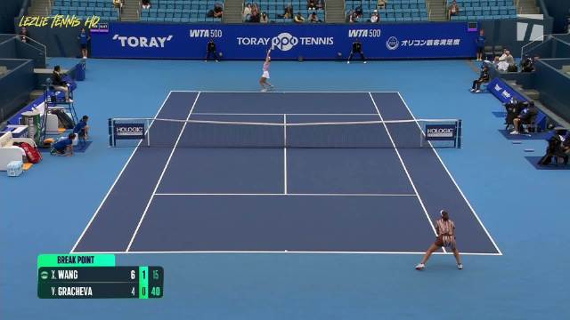 第一盘,王欣瑜耗时40分钟6-4拿下,第二盘王欣瑜3-6不敌格拉乔娃。