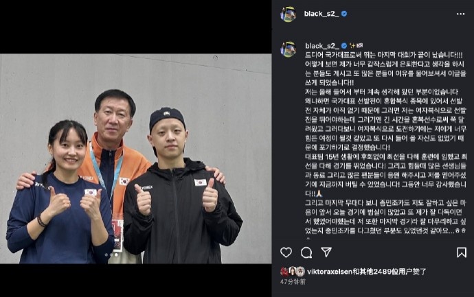 尽管如此,希望大家能以一种愉快的心情观看这场比赛。我相信钟民是一个非常有潜力的选手,无论将来与谁搭档,他都会更加出色。希望大家继续支持他!