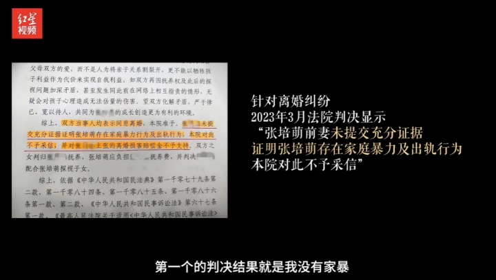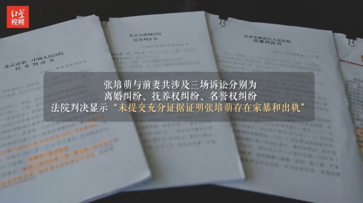 张培萌与前妻共涉及三场诉讼,分别为离婚纠纷、抚养权纠纷、名誉权纠纷,法院判决显示“未提交充分证据证明张培萌存在家暴和出轨”。