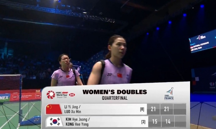 >李怡婧/罗徐敏2-0击败韩国组合,晋级法国羽毛球公开赛女双半决赛