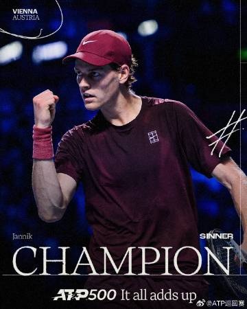 直播吧10月26日讯 ATP500维也纳决赛,辛纳2-1逆转兹维列夫夺冠。