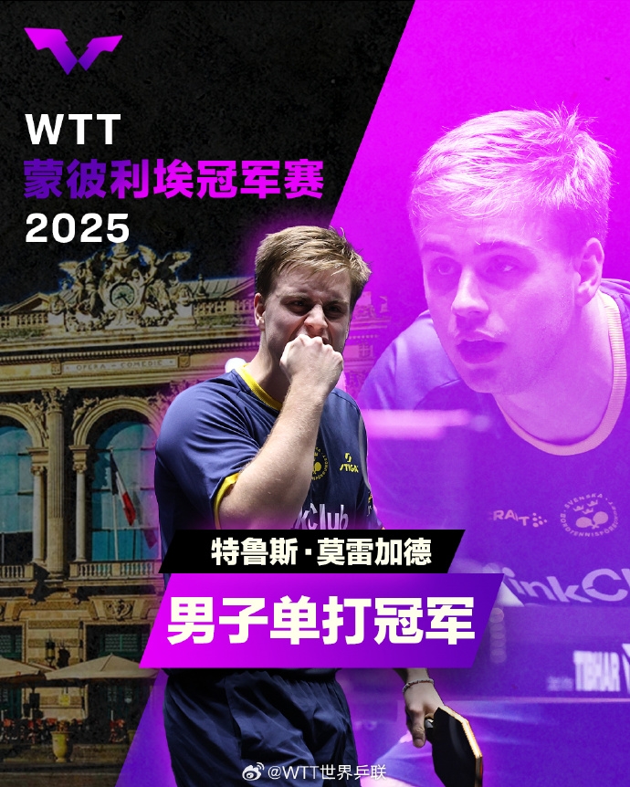WTT蒙彼利埃冠军赛男单决赛:莫雷加德4-0松岛辉空,夺得冠军