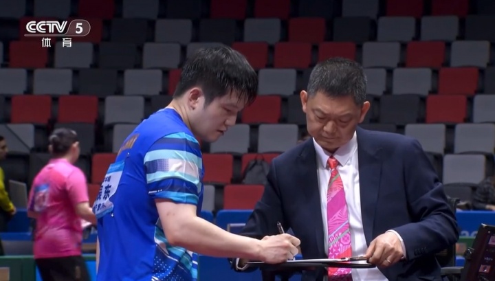 第二局双方开场3-3,随后樊振东连得5分,最终樊振东11-6拿下第二局;之后第三局樊振东11-8拿下。