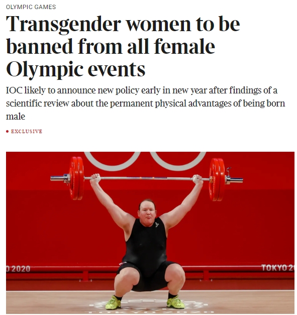 据报道,国际奥委会(IOC)在对出生时为男性的运动员拥有永久身体优势的证据进行科学审查后,将于明年初宣布禁止跨性别女性参加女子比赛。