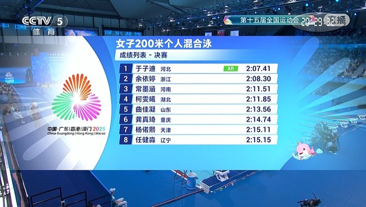 于子迪决赛以2分07秒41的成绩打破叶诗文在2012年伦敦奥运会上创造的亚洲纪录,名将余依婷收获银牌,河南选手常墨涵排名第三。