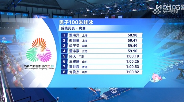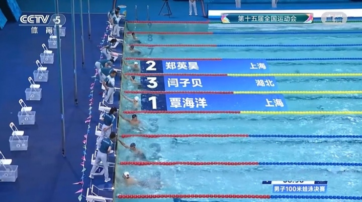 蛙王!全运会男子100米蛙泳决赛:覃海洋58秒98强势夺金