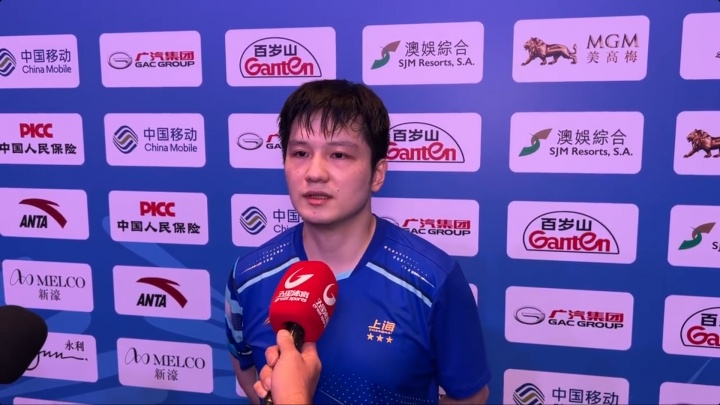 樊振东:“我觉得首先因为打到全运会半决赛,大家都说全运会是技术水平包括最难打的比赛之一,所以作为我来说,打到半决赛,首先不管面对谁,肯定都不会有任何的侥幸。”