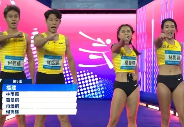 直播吧11月16日讯 全运会4x100米混合接力决赛上,由林雨薇、葛曼棋、肖远鹏、何锦櫶组成的福建队以40秒37夺冠,打破全国纪录!