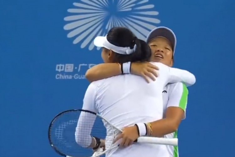 直播吧11月19日讯 全运会网球女双决赛,四川队的蒋欣玗/王雅繁2-1击败广东队的王欣瑜/袁悦,最终问鼎冠军。