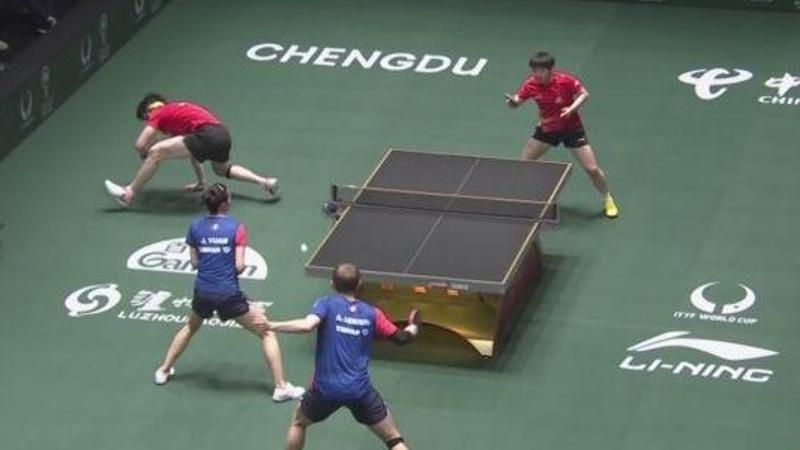 第一盘混双:王楚钦/孙颖莎3-0A·勒布伦/袁嘉楠