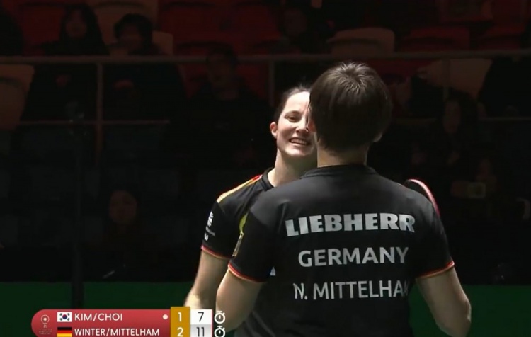 第五盘:金娜英/崔孝珠1-2温特/米特兰姆 【11-9,9-11,7-11】