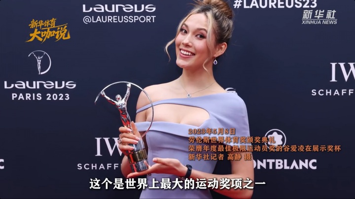 这个劳伦斯,这个是2023年?我赢了,这个是世界上最大的运动奖项之一,然后这一年我还记得是和梅西一起赢的。这是很有代表性的时刻,因为我觉得这个就和我刚才讲的有这种责任,我希望通过我自己的努力,包括比赛,包括训练,包括成绩,不只是我每次参赛是代表自己,但是更是代表一个精神,然后代表一个团体,所以这个我觉得是代表性。