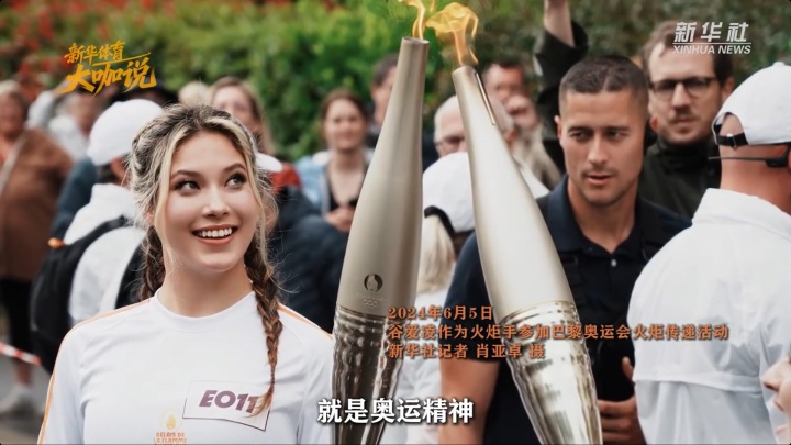 然后,这个是(我当)巴黎奥运会火炬手的时候,这个我觉得就是精神吧,就是奥运的精神,非常纯的奥运精神,正常比赛的时候,你主要心情和心态,还有包括脑子里的这种想法,都是环绕着比赛,所以你可能没法儿就是真的去吸收奥运精神,奥运这种过程,因为你永远在想你自己这种压力。但是因为跑火炬的时候等于没有这种压力,就非常纯的一种开心和热爱,真的能感受到奥运精神,作为一个运动赛事和所有其他的运动赛事真的很不同,然后是有一种世界性,然后一种团体性,让我感觉非常感动。