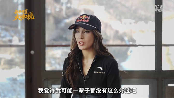 谷爱凌:我记得我们第一天来的时候,好像是周六晚上,然后我正好去健身房,然后崇礼的健身房就是面对着雪道嘛,然后崇礼正好有夜场,所以我就是在那个跑步机上的时候往外一看,感觉就是人山人海的,就是真的就是人全都是满的,然后就是队排得长长的。我知道可能对正常人来讲,他们说哎呀我不要排队,但是对我来说是很开心的一件事情,因为意思就是能看到有这么多人,这么热爱滑雪,我就觉得哇,太开心了,我还听说就是云顶这座山(雪场)达到人数极限了,所以这个我觉得就是我的目标。比如说从什么微博评论呀,或者小红书这种评论中能看到,或者私信就能看到大家给我发这么多,就说因为你我才开始滑雪,或者因为你我听到了滑雪,所以非常自豪啊,太开心了,因为你赢一场比赛你(只会)开心一两天,那你有这种自豪,我觉得是一辈子的,我永远不会忘了,每天打开窗帘就开心,这个就是持续性的一种历史性的改变,我觉得跟赢奖牌还是有区别的。