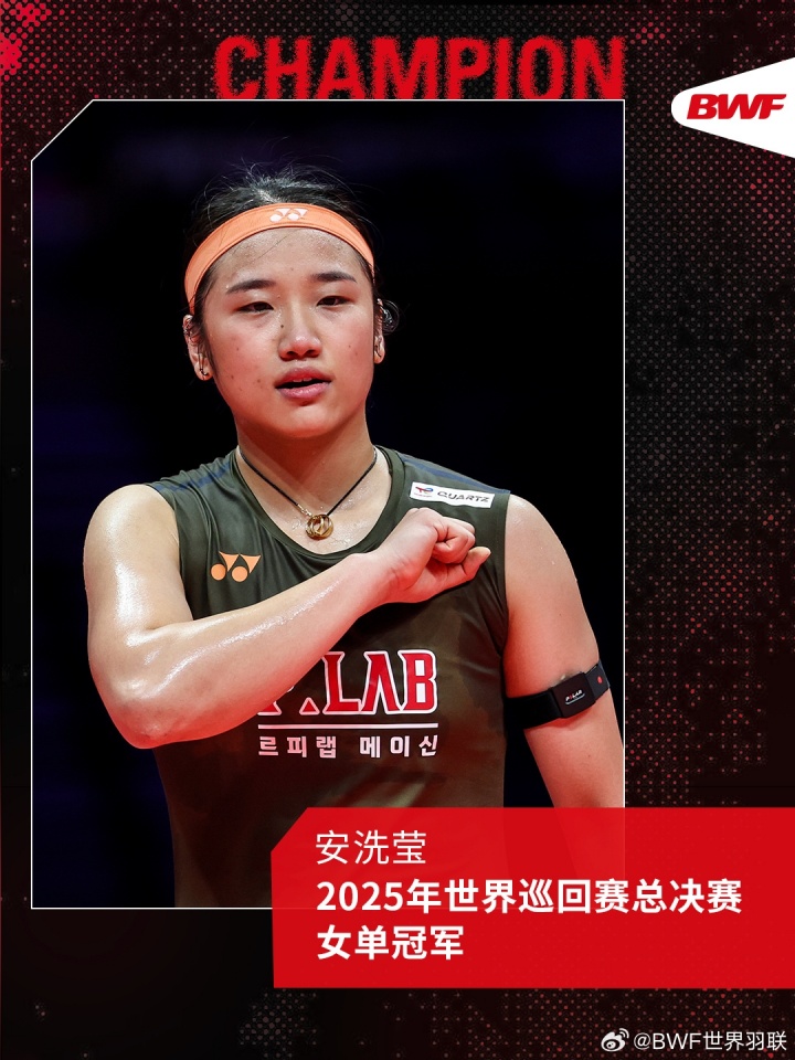 直播吧12月21日讯 在今天进行的2025年世界巡回赛总决赛女单决赛中,王祉怡1-2不敌韩国名将安洗莹,获得亚军,安洗莹则是赢得了本赛季的第11冠,时隔4年再夺总决赛冠军。