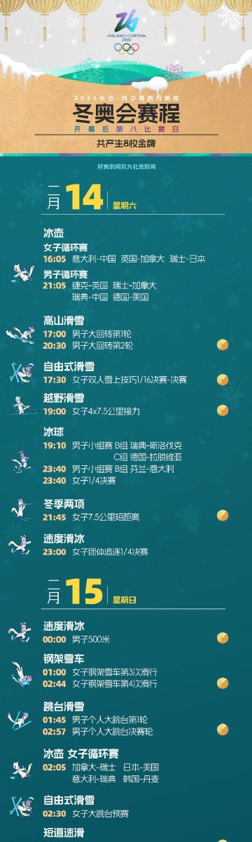 >谷爱凌除夕夜冲金!米兰冬奥会观赛日历,共18天,产生116枚金牌