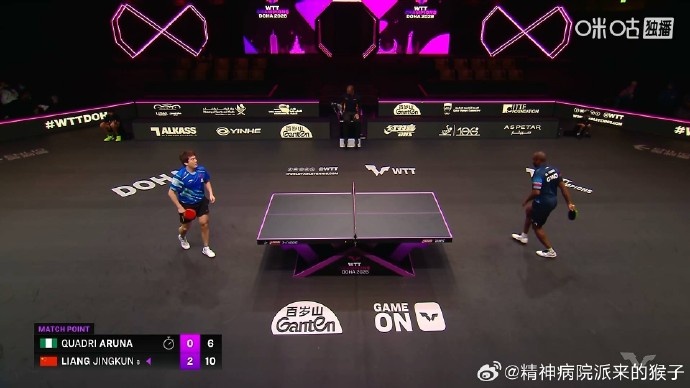 直播吧1月8日讯 WTT多哈冠军赛男单1/16决赛,梁靖崑3-0夸德里·阿鲁纳。