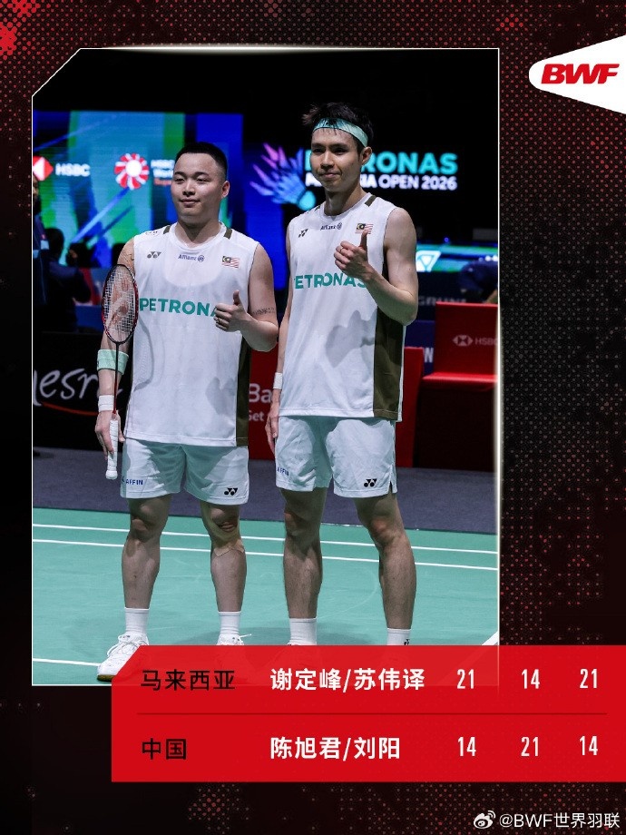 >马来西亚羽毛球公开赛次轮:陈旭君/刘阳无缘男双八强