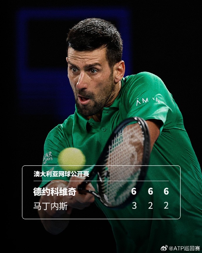 直播吧1月19日讯 澳网男单首轮,塞尔维亚天王德约科维奇直落三盘击败马丁内斯,连续19次参加澳网均成功晋级第二轮。