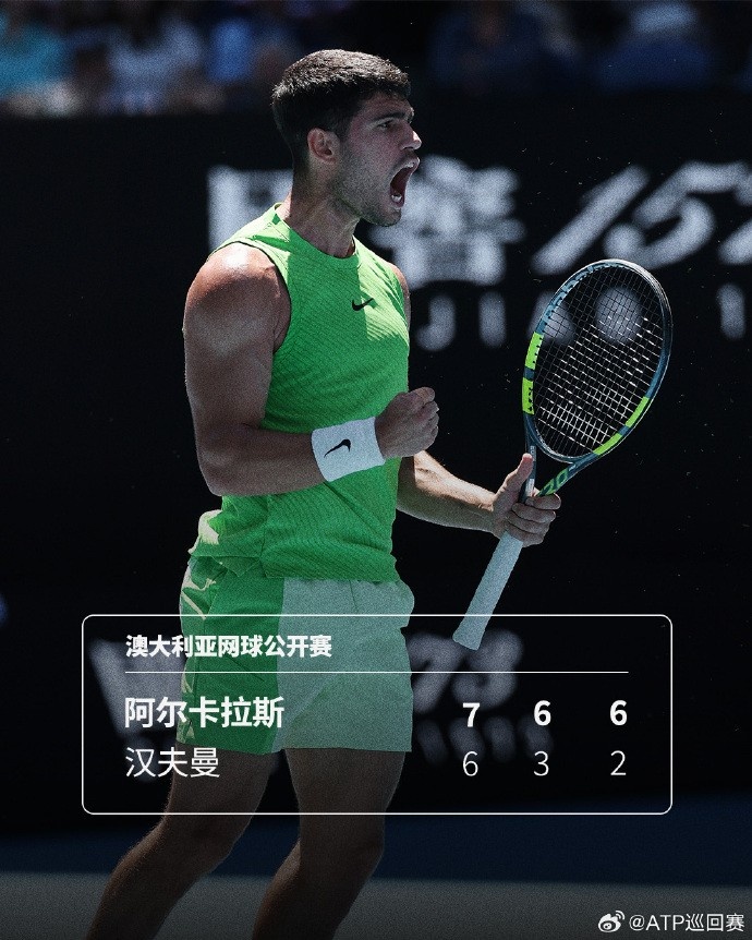 阿尔卡拉斯直落三盘击败汉夫曼,晋级澳网男单第三轮