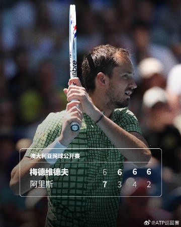 直播吧1月21日讯 澳网男单第二轮,三届赛会亚军、11号种子梅德韦杰夫逆转击败法国选手阿里斯,成功跻身32强。