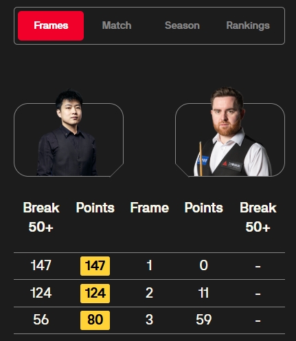 这是历史第238杆147,本赛季第21杆147。