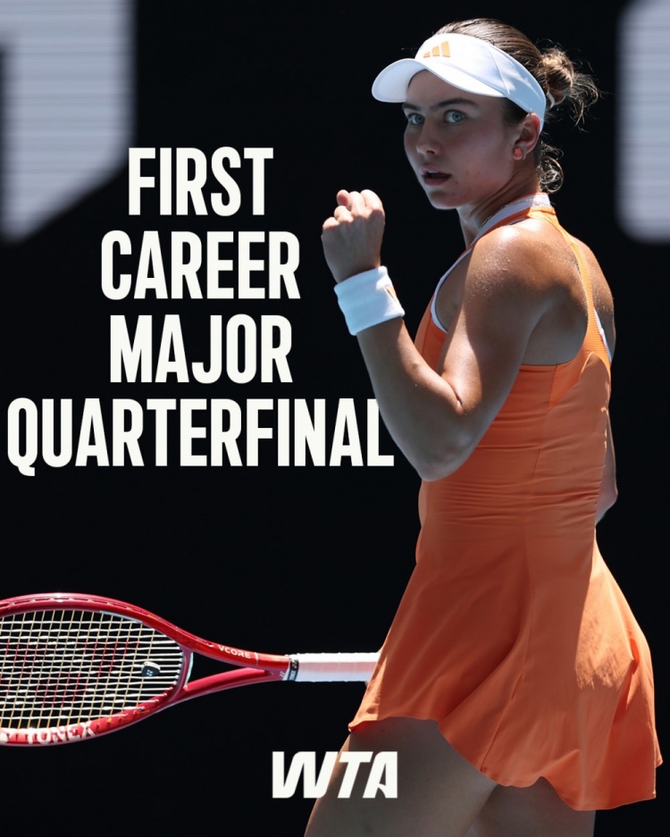 直播吧1月25日讯 2026澳网女单第四轮,29号种子约维奇以6-0 6-1横扫普丁塞娃,成功挺进八强。