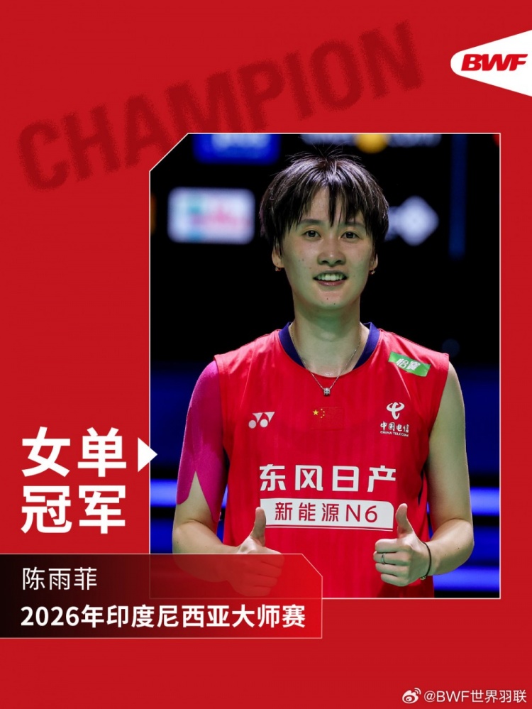 直播吧1月25日讯 2026年印尼羽毛球大师赛决赛,陈雨菲2-0击败碧查梦,如愿夺得女单冠军。