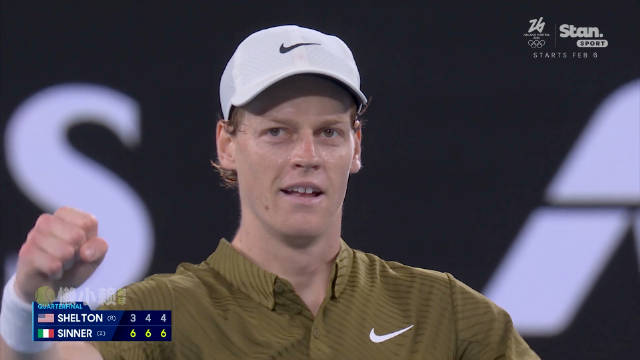 直播吧01月28日讯 澳网男单1/4决赛,辛纳3-0战胜谢尔顿,成功晋级男单四强!