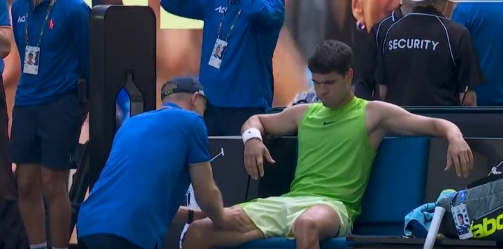 比赛前两盘阿尔卡拉斯2-0领先,第3盘,阿尔卡拉斯在5-4领先时出现受伤状况,申请医疗暂停,兹维列夫非常不满,连续抗议:“他只是抽筋。这简直是胡扯!难以置信!你不是认真的吧?你要保护好他们两个(阿尔卡拉斯和辛纳)。真是难以置信。”