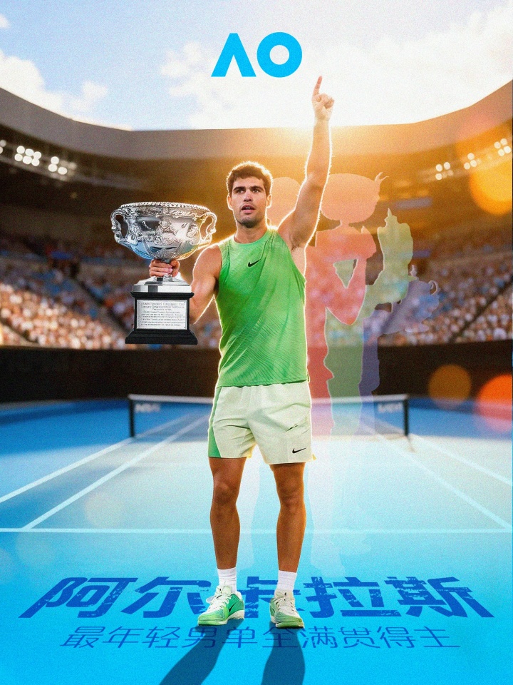 直播吧02月01日讯 2026年澳网男单决赛,22岁的阿尔卡拉斯3-1战胜38岁的德约科维奇,生涯首次捧起澳网冠军奖杯。