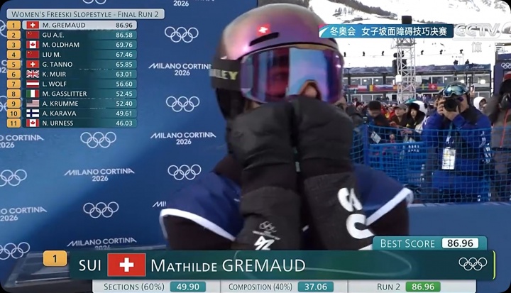第二滑格雷莫德得到86.96分,超过谷爱凌跃居第一!
