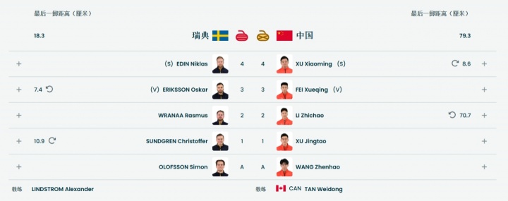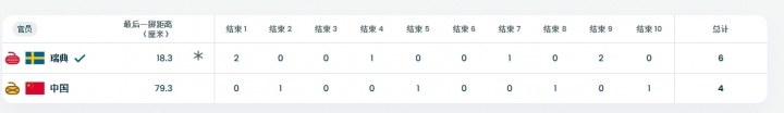 中国冰壶男队4-6不敌卫冕冠军瑞典队,目前战绩四战四负