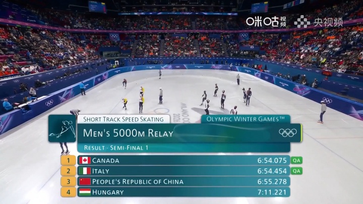直播吧02月16日讯 短道速滑男子5000米接力半决赛,中国队刘少昂、林孝埈、李文龙、张柏浩6:55.278获得小组第三,遗憾进入B组决赛。加拿大、意大利进入A组决赛。