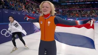 荷兰名将桑德拉·贝尔塞伯在500米夺金后,1000米以1:28.437的成绩再夺金牌。