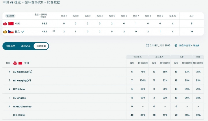 直播吧02月18日讯 米兰冬奥会冰壶男子团体赛,中国队5-10不敌捷克,遭遇循环赛第六败。八轮过后,中国队与瑞典和捷克同为2胜6负,因为胜负关系排名倒数第一。