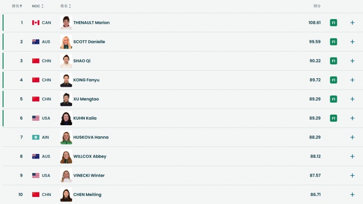 邵琪第20位出场,得分90.22,排名第3,晋级决赛。