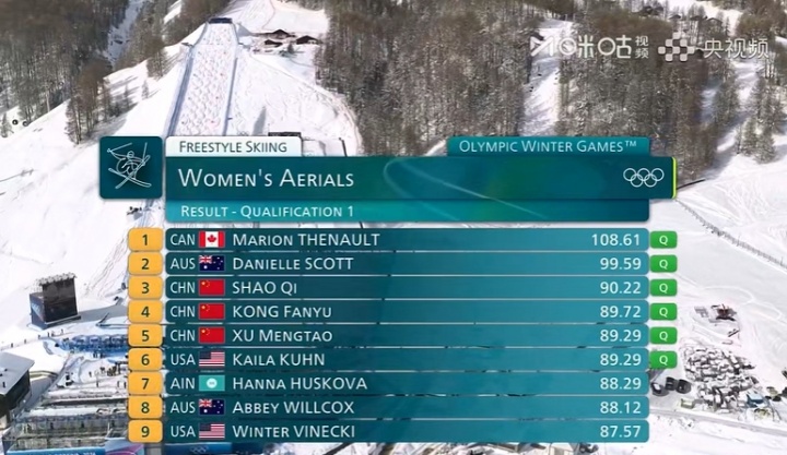 第五次征战冬奥会的徐梦桃第12位出场,得分89.29,排名第5,晋级决赛。