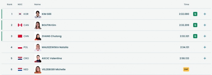 张楚桐第一组出发,滑出2分32秒321排名小组第三晋级半决赛;