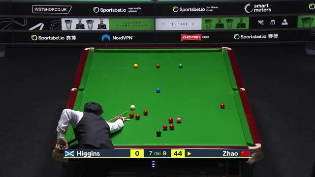 随后赵心童连下三城,总比分10-7希金斯取得比赛胜利!
