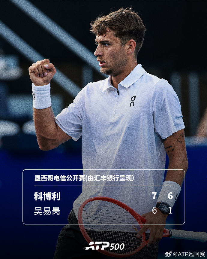 直播吧02月27日讯 ATP墨西哥1/4决赛,吴易昺首盘错失两个盘点,全场8个破发点均未能把握住,以0-2不敌5号种子科博利,无缘晋级四强。