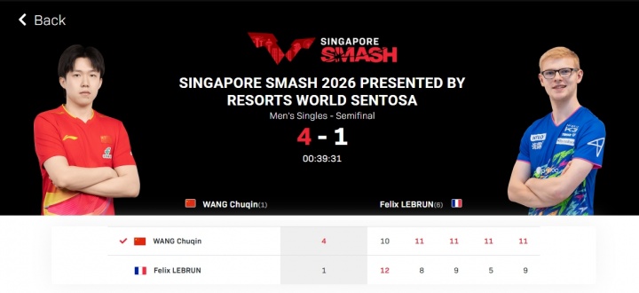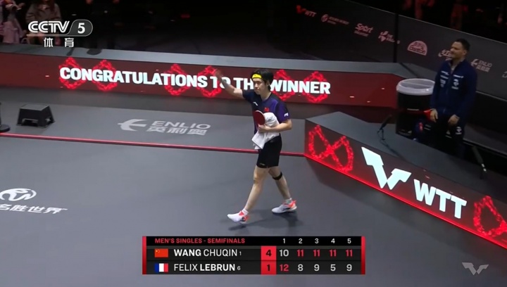 直播吧03月01日讯 WTT新加坡大满贯男单半决赛,王楚钦4-1逆转小勒布伦晋级决赛。